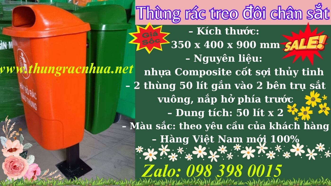 Thùng rác treo composite 50 lít cho khu vui chơi trẻ em