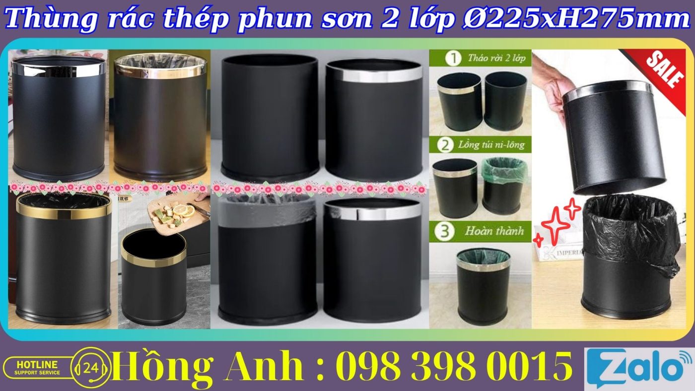 Thùng rác văn phòng 2 lớp bằng thép